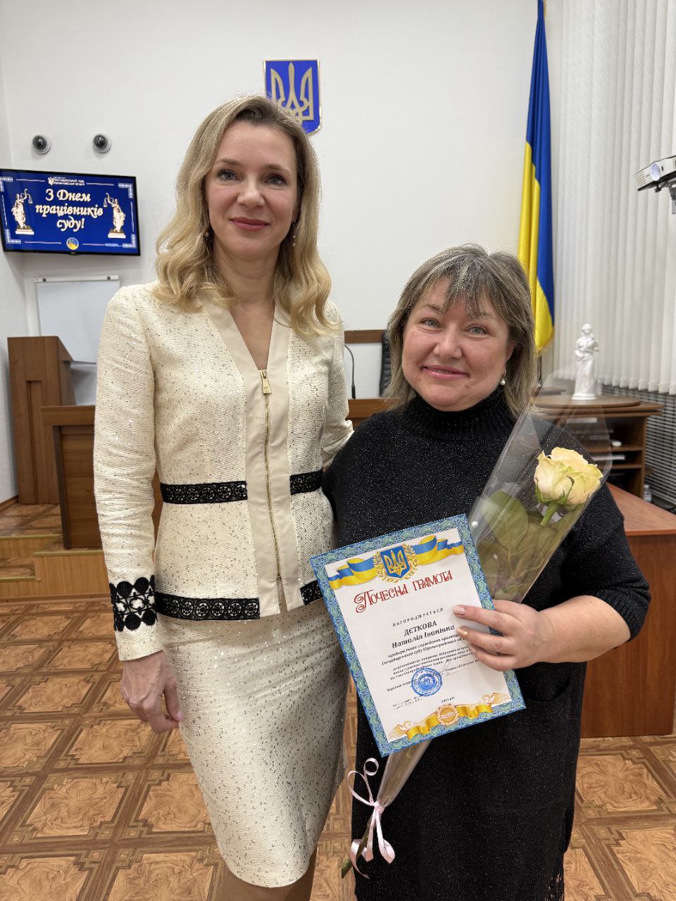Очільниця суду подякувала кожному за особистий внесок у діяльність установи та зазначила, що колектив суду є згуртованою командою, справжньою сім’єю, у якій пліч-о-пліч працюють як ті, хто віддав судовій системі багато років, так і працівники, які нещодавно приєдналися до колективу. Також вона підкреслила, що можливість працювати й здійснювати правосуддя є заслугою захисту, який щоденно забезпечують Збройні Сили України.