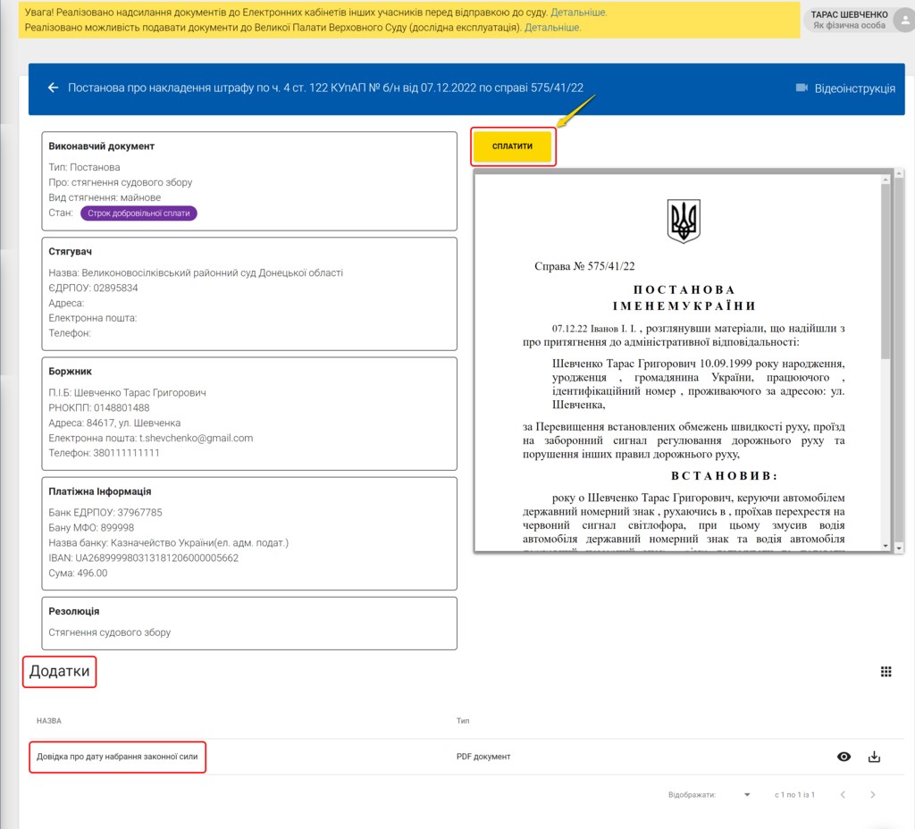КРОК 6. Відкрийте виконавчий документ і натисніть «Сплатити»