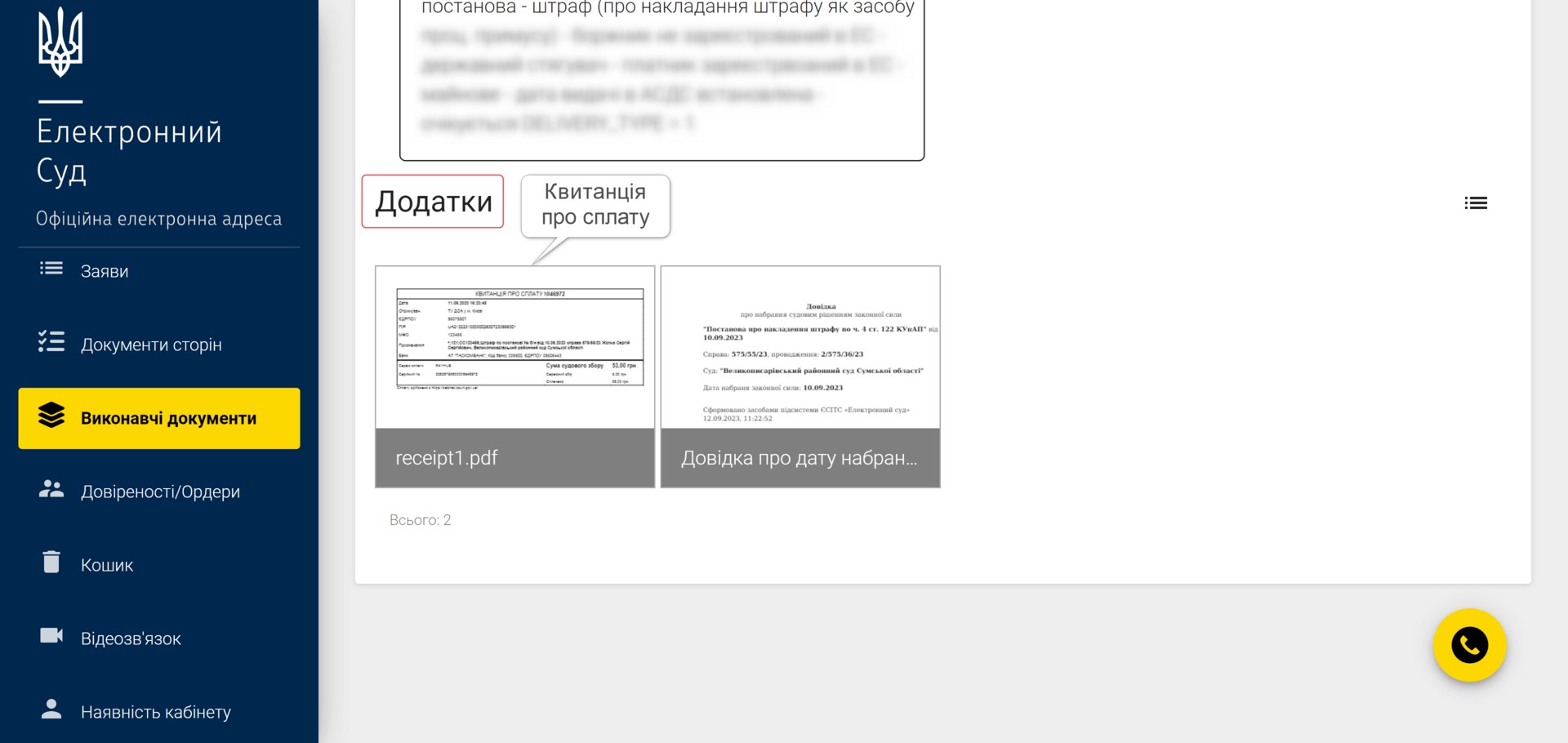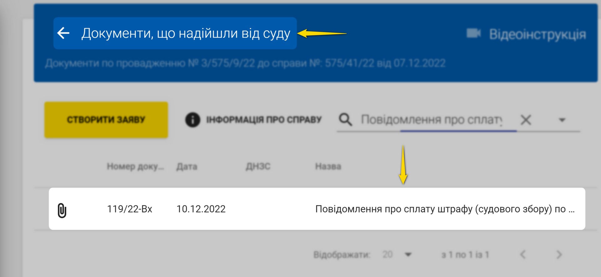 квитанція та інформація про сплату автоматично направляються до суду і відображаються в документах по справі;